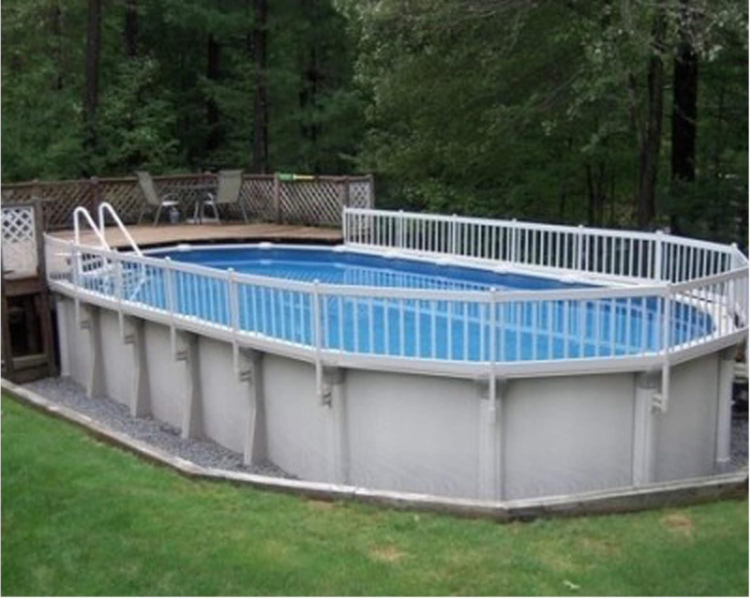 Gli pool products 5 ft. Browse our selection of pool fence kits and deck kits for round and oval above ground pools available in wide range of sizes. The attractive fencing keeps toys, balls and floats within the pool and at the same time minimizes pool use by unauthorized guests and pets. Our standard fence for above ground pools, also known as our 24 economy pool fence, comes in a white color with round fence pickets. For a sturdy and luxurious fence, metal will be your safe bet.